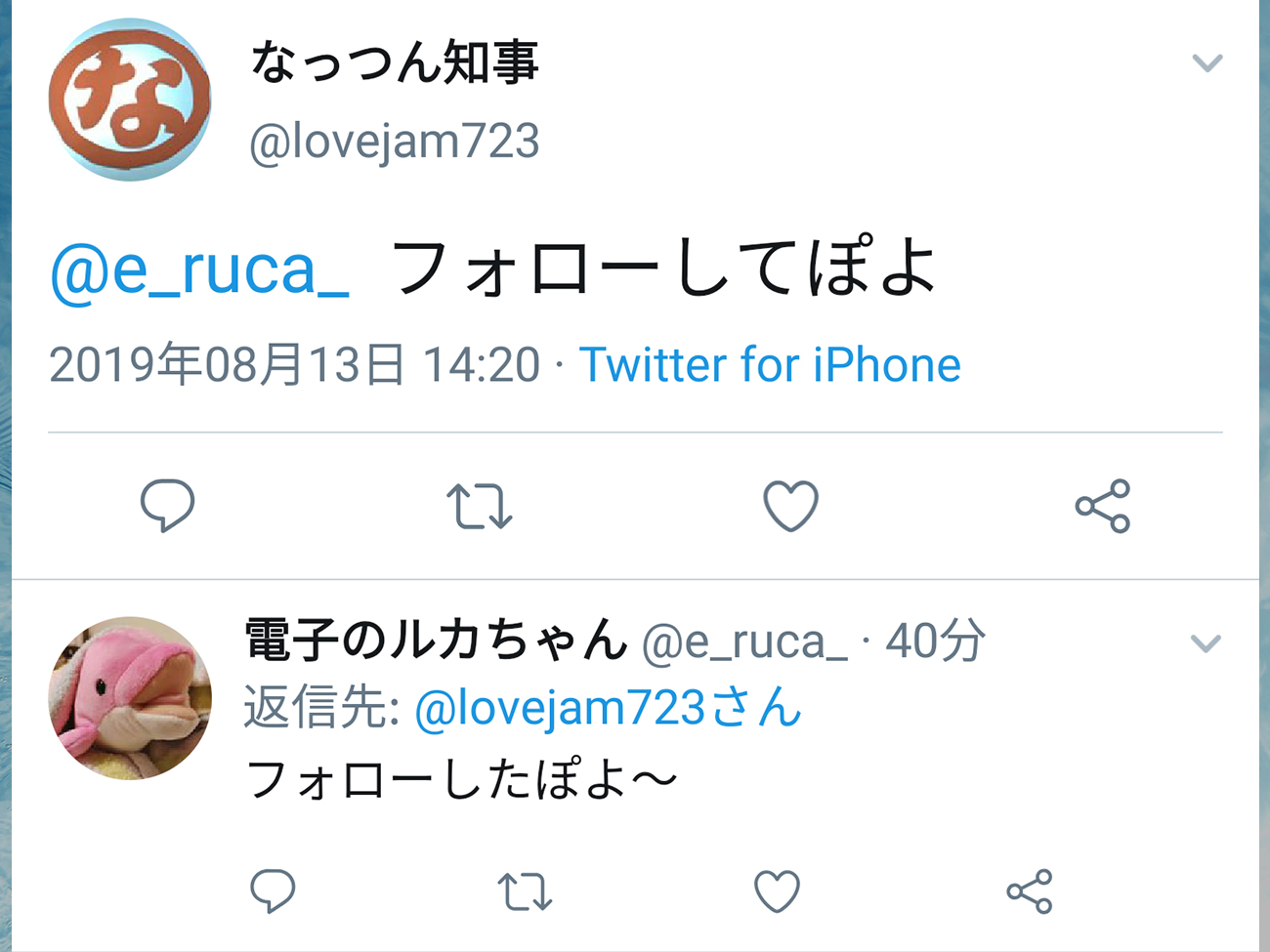 電子のルカちゃんは、「フォロー返し」のような忖度をしません。